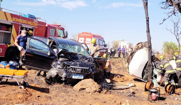 Uma colisão envolvendo três carros matou pelo menos uma pessoa na manhã deste sábado (4/10), na GO-431, em Pirenópolis. Dois dos veículos envolvidos na batida, que aconteceu perto do trevo que liga à BR-153, capotaram, e saíram da pista, deixando os ocupantes presos às ferragens.