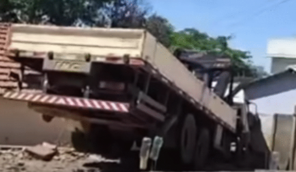 Um caminhão muck desgovernado invadiu duas casas na cidade de Rio Verde, na manhã desta sexta-feira (7). No momento do acidente, seis pessoas estavam nas residências, sendo duas mulheres na mais antiga, que teve a frente e o telhado completamente destruídos, e quatro pessoas na outra.