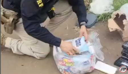 PRF apreende mais de 50kg de cocaína e arma de fogo em bagagens de passageiro de ônibus na BR-153