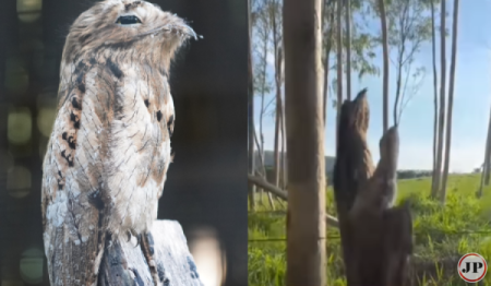 Chacareira registra urutau com filhote quase "invisíveis" em tronco de cerca, em Itaberaí