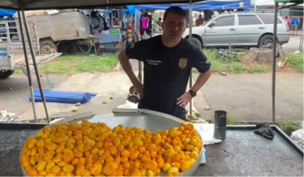 O delegado Humberto Teófilo flagrou, neste sábado, uma prática irregular conhecida como “golpe do falso litro de pequi” durante uma ação de fiscalização na feira do Garavelo, em Aparecida de Goiânia. A situação ocorreu após consumidores relatarem suspeita de que recipientes vendidos como “1 litro” não correspondiam à medida real.