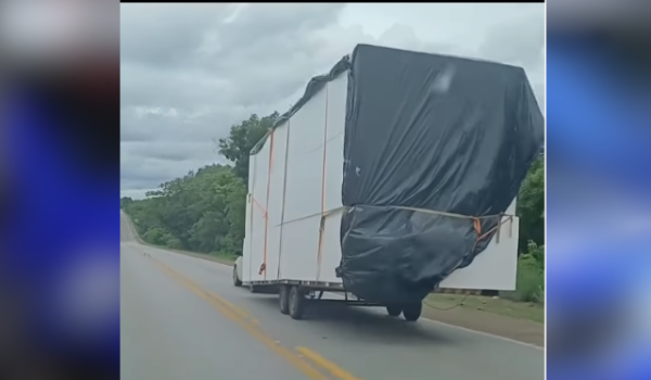 De acordo com a PRF, o condutor também não conseguia utilizar adequadamente os retrovisores devido ao tamanho da carga, o que agravou ainda mais a falta de visibilidade e de controle do tráfego ao redor do veículo.