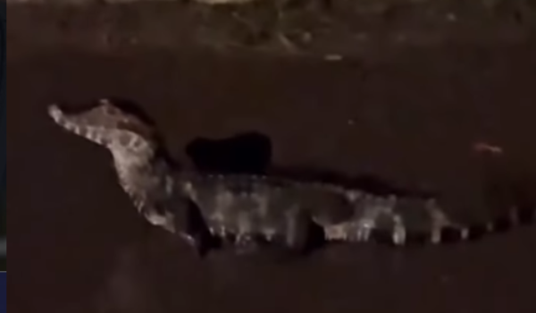 O animal foi registrado em vídeo por uma moradora, que se deparou com a situação durante a madrugada. As imagens mostram o jacaré no meio da via, chamando a atenção pelo porte e pela tranquilidade com que se deslocava pela rua.