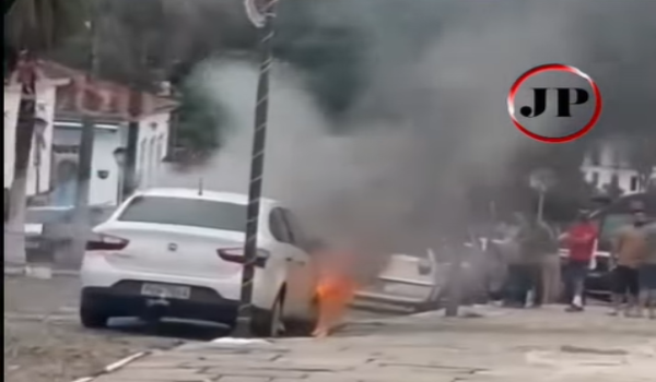 Um veículo pegou fogo na região central de Pirenópolis, nas proximidades da Igreja Matriz, por volta de 12h deste domingo (4). O carro estava estacionado quando as chamas começaram de forma repentina, chamando a atenção de moradores e turistas que circulavam pelo local.