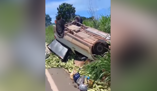 Foi registrado mais um acidente na rodovia GO-154, no trecho entre os municípios de Uruana e Uruíta. Uma picape que transportava uma carga de milho acabou capotando às margens da via.