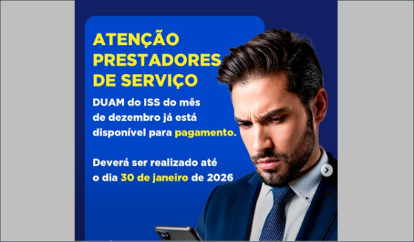 Os DUAMs do ISSQN (Imposto Sobre Serviços de Qualquer Natureza) referentes a dezembro/2025 emitidos pelo Portal Nacional já estão disponíveis para emissão no Sistema Prodata.