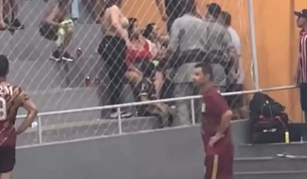 Um policial militar sofreu fratura no braço ao tentar conter uma confusão registrada durante a final de um campeonato de futsal em Itapirapuã, na noite de sábado (7). O episódio ocorreu logo após o encerramento da partida, no ginásio onde o torneio era disputado.