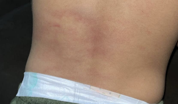 A mãe levou a criança ao hospital, onde foi constatada lesão por meio de relatório médico anexado à ocorrência.