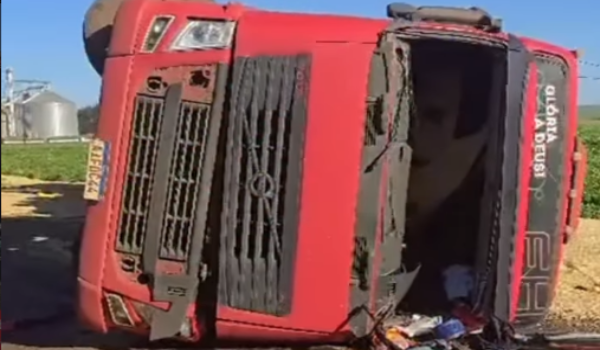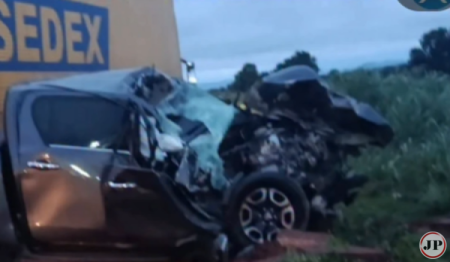 Colisão entre caminhão do Sedex e caminhonete deixa motorista em estado grave em Porangatu
