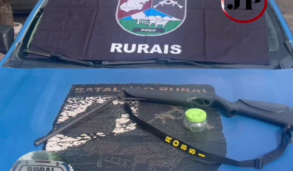 Os policiais foram acionados após denúncia e, ao chegarem à Fazenda Canaã V, constataram o abate irregular de um animal bovino. Durante as diligências na propriedade, foi localizada uma arma de fogo calibre .22, adaptada de carabina de pressão, além de duas munições intactas, sem qualquer documentação legal.
