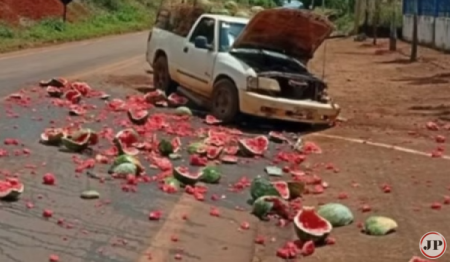 Colisão entre caminhão e camionete carregada com melancias deixa dois feridos em Carmo do Rio Verde