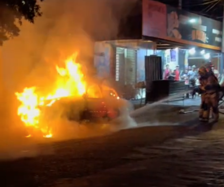 As labaredas consumiram todo o veículo, apesar do esforço dos bombeiros. Enquanto isso, o suspeito foi localizado junto ao carro, ainda com a mencionada faca na cintura. Questionado, ele confessou ter iniciado o fogo por meio dos bancos.