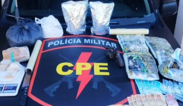 Já na residência ligada aos suspeitos, foram apreendidos diversos tipos de drogas.