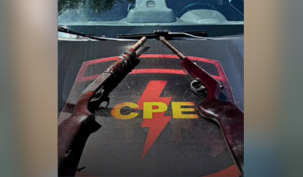 A partir das diligências, os policiais localizaram os envolvidos e apreenderam duas armas, sendo uma de calibre .22 e uma espingarda calibre 12.