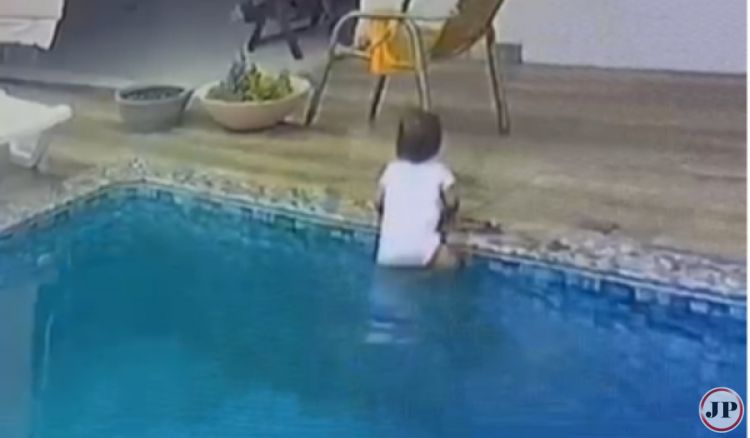 afogando na piscina pelas câmeras de segurança e chamou o pai, que