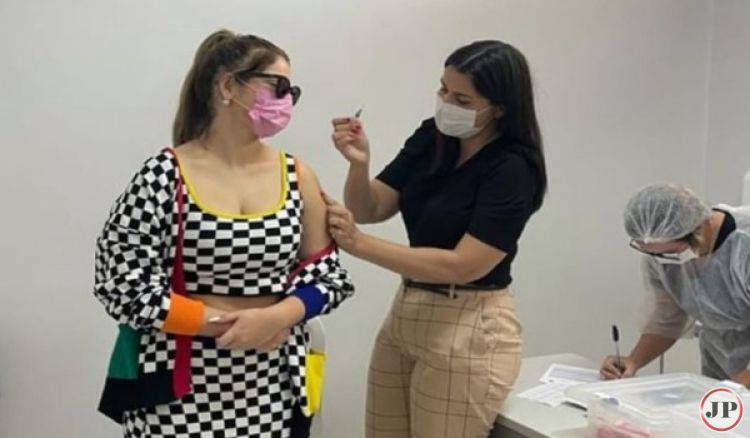 a cantora sertaneja Marília Mendonça tomou vacina contra covid-19 em Aparecida