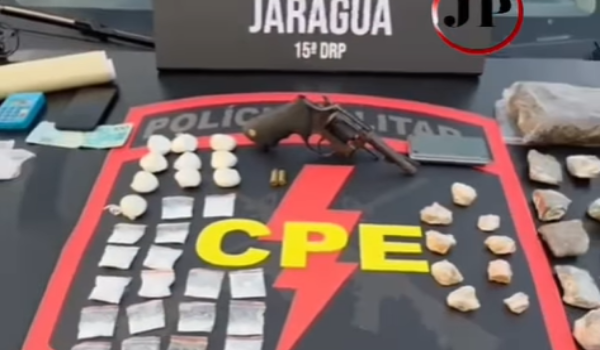 O indivíduo foi encaminhado à Delegacia de Polícia de Jaraguá, onde foi autuado em flagrante pelos crimes de tráfico de drogas e posse ilegal de arma de fogo. Ele permanece preso à disposição do Poder Judiciário.