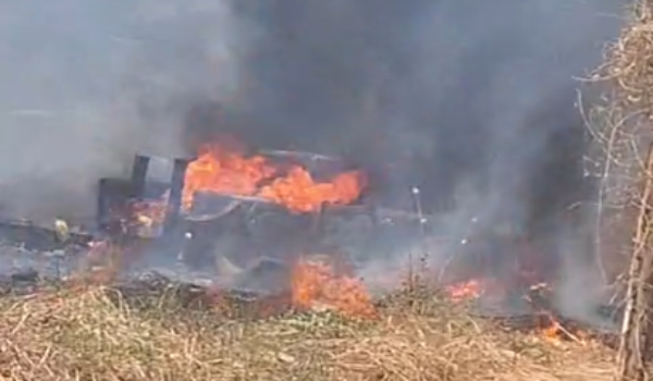 Na tarde desta terça-feira (7), por volta das 12h, um veículo — aparentemente uma caminhonete Amarok — foi completamente tomado pelas chamas em Goianésia.