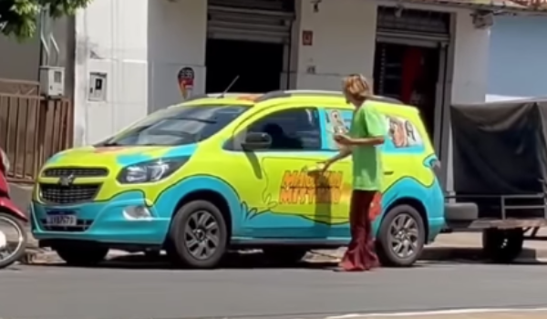 O que deixou tudo ainda mais engraçado foi o motorista, que lembra o personagem Salsicha, parceiro inseparável do Scooby na animação. A semelhança e a criatividade chamaram atenção de quem passava e conquistaram os internautas, que se divertiram com a “versão goiana” do desenho.