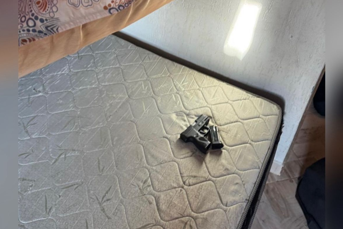 Arma de fogo encontrada com o suspeito (Foto: Reprodução)