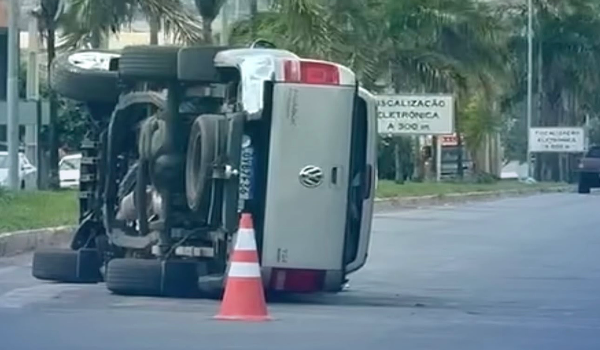 Na tarde desta sexta-feira (7), por volta das 13h47, um veículo tombou no cruzamento da Avenida Brasil com a Avenida Contorno, saída para Vila Propício, em Goianésia.