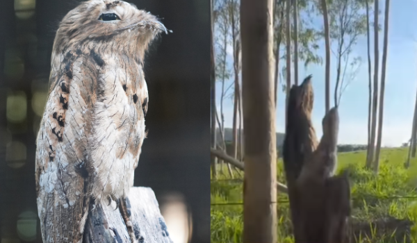 O urutau — também conhecido como mãe-da-lua — é mestre em se misturar ao ambiente. Com plumagem que reproduz a textura da madeira e a habilidade de permanecer imóvel por longos períodos, a espécie costuma se “transformar” em parte do tronco onde pousa, dificultando sua identificação até mesmo por olhos atentos.