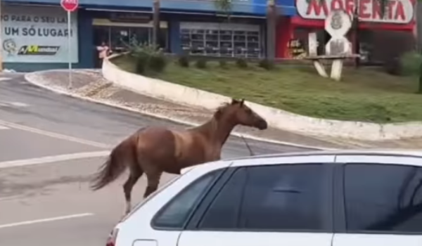 De acordo com funcionários de lojas da região, diversos motoristas precisaram parar para permitir a passagem do cavalo, evitando acidentes.