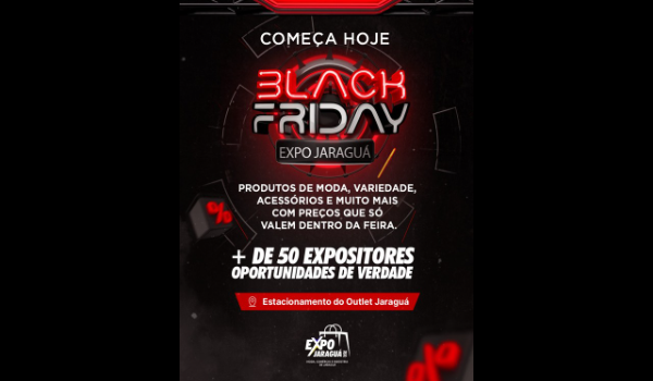 A Expo Jaraguá 2025 deu-se início, nesta quinta-feira, e hoje teremos a maior Black Friday que a cidade já viu. Em um dos momentos mais aguardados da programação, os 50 expositores da feira colocam à disposição do público uma variedade inédita de produtos com descontos exclusivos e condições que valem somente durante o evento.