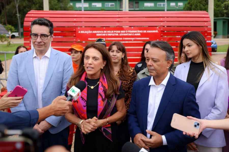 Para marcar o início da campanha de 21 dias de ativismo pelo fim da violência contra a mulher, a coordenadora do Goiás Social, primeira-dama Gracinha Caiado, inaugurou o primeiro Banco Vermelho, em Goiânia, nesta quinta-feira (04/12), na Praça Cívica. O objetivo é mobilizar e alertar a população para o combate ao feminicídio. Com o lema “sentar e refletir, levantar e agir”, o banco vermelho simboliza o sangue derramado pelas vítimas de agressões.