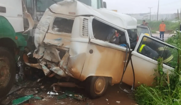 Segundo os bombeiros, o caminhão Ford Cargo 2422, prata, vinha sentido Brasília-Nordeste quando o volante travou, atravessou a pista e bateu contra dois carros e um outro caminhão. O condutor, de 51 anos, não se feriu e recusou atendimento. Uma Kombi branca, com três ocupantes, foi atingida com mais gravidade.