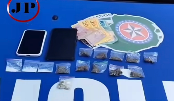 Durante patrulhamento de rotina pela cidade, a equipe policial abordou um motociclista que conduzia um veículo com características suspeitas. Na revista pessoal, os policiais localizaram 10 porções de substância análoga à maconha e três porções de substância análoga à cocaína, todas embaladas para comercialização, além de R$ 195 em dinheiro, quantia associada à atividade ilícita.