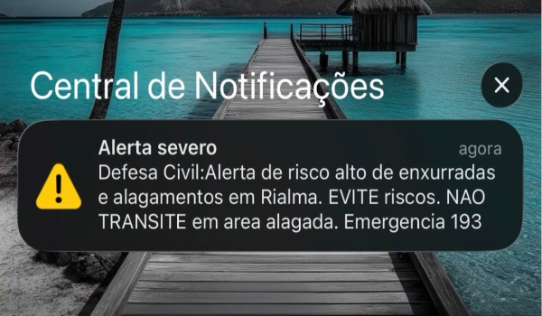 Na noite desta terça-feira, 08 de abril, por volta das 19h35, a Defesa Civil emitiu um alerta severo para o município de Rialma, indicando alto risco de enxurradas e alagamentos na região.